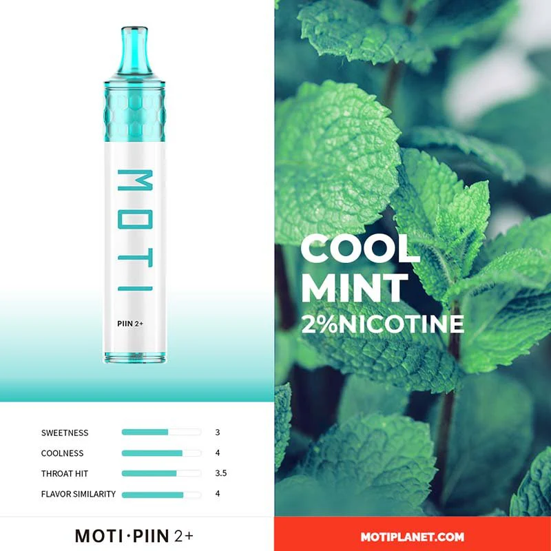 The MOTI PIIN 2 PLUS 2000 Puffs is a compact, draw-activated disposable vape designed for simplicity and flavor delivery. Its key features include a non-rechargeable 950mAh integrated battery and a generous 6ml e-liquid capacity to provide its estimated puff count. The device utilizes a 1.6ohm round wire coil made with organic cotton to ensure stable and consistent flavor output from the beginning to the end of its life. It is available in nicotine salt strengths of 2% or 5% in markets outside of TPD regulations and is designed for a smooth mouth-to-lung (MTL) vaping experience.
